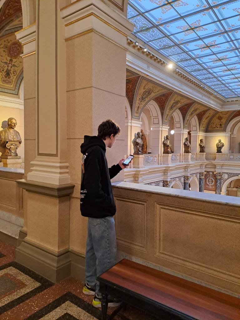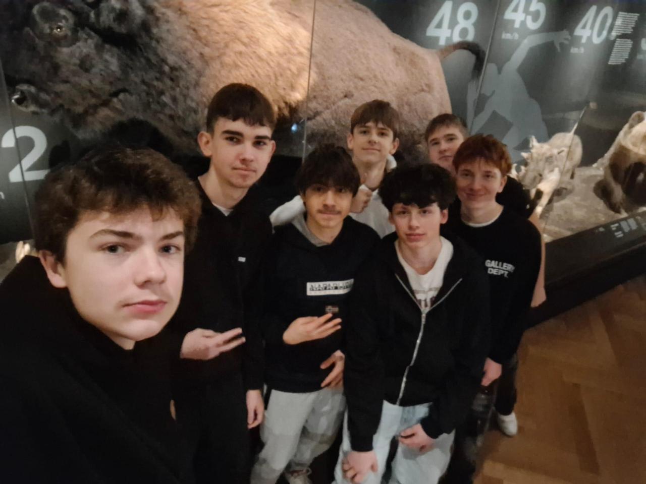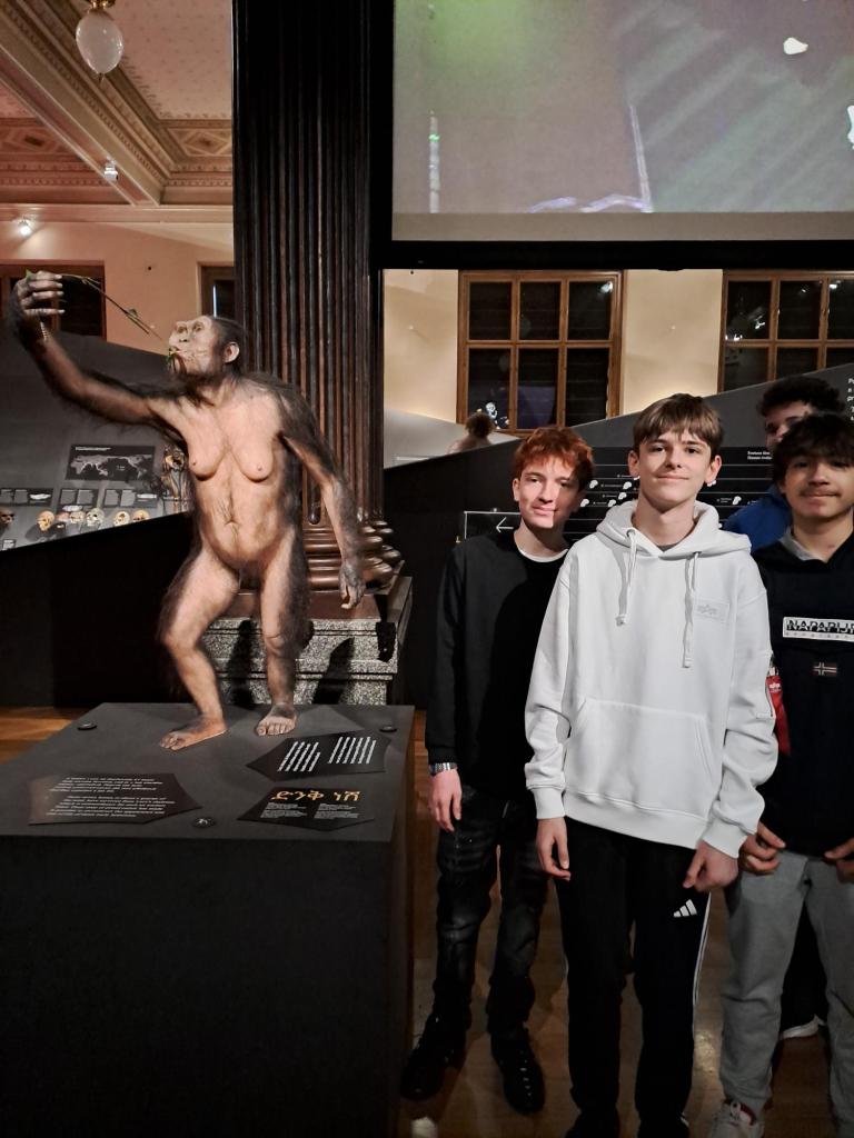 Ke konci ledna se 8. B v Národním muzeu Praha vydala po stopách evoluce člověka v rámci výuky přírodopisu netradičně v prostorách historické budovy přírodovědné sbírky.