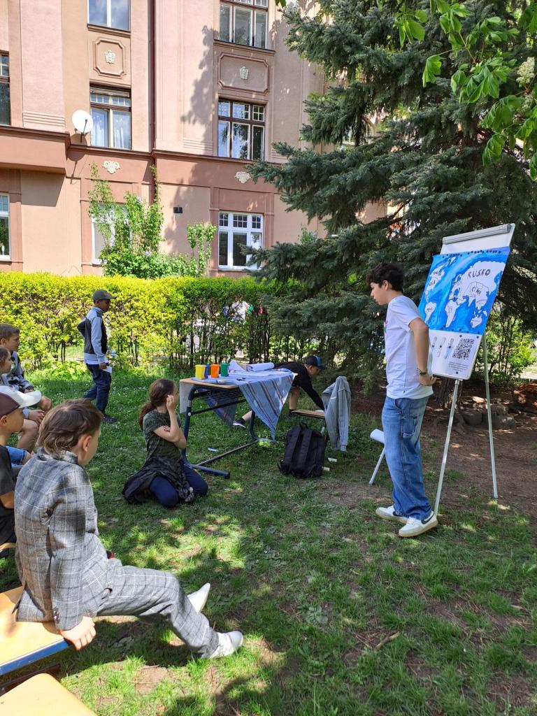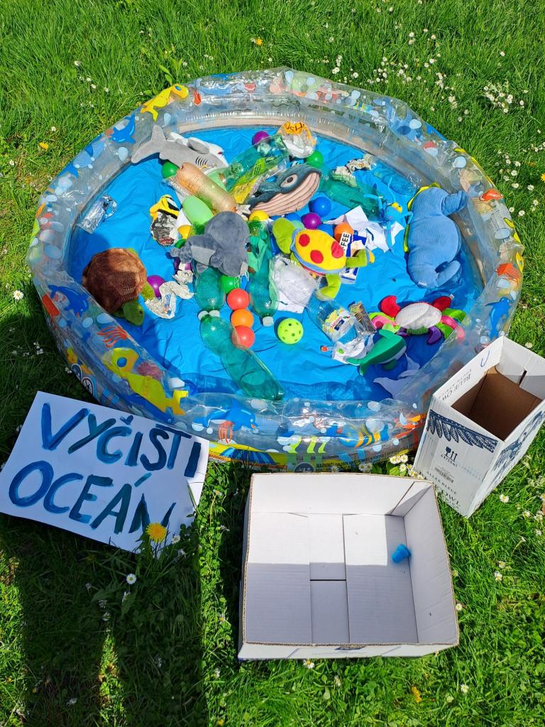 V rámci projektu Světová škola tým žáků od 5. po 9.ročník připravil a zrealizoval poslední dubnový den ve venkovních prostorách malé školy akci na podporu povědomí o nebezpečí plastů v lokálním i globálním měřítku.