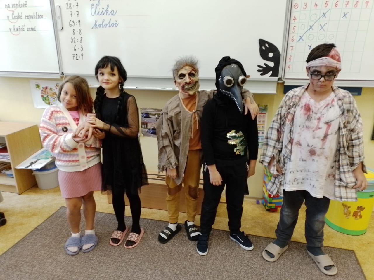 Halloweenské masky ve 3. A Fotografie v příspěvku.
