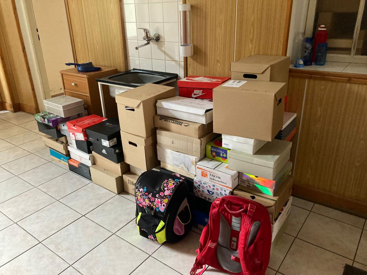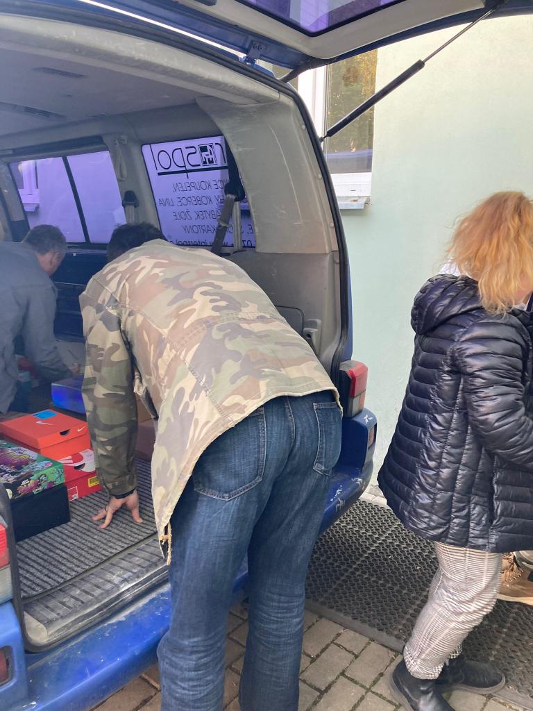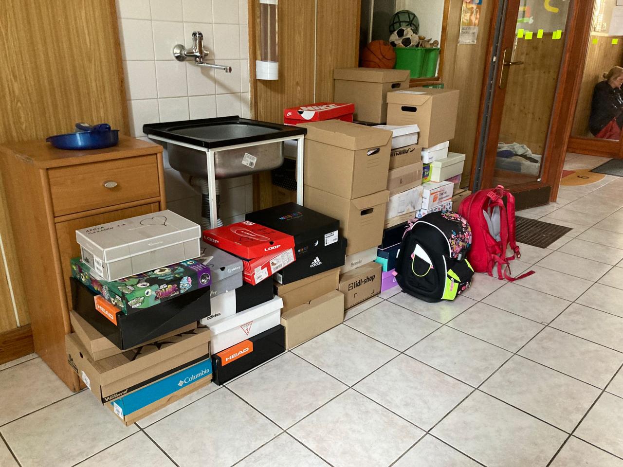 Několik krabic bude předáno dětem, které jsou ubytovány se svými matkami v Nových lázních.