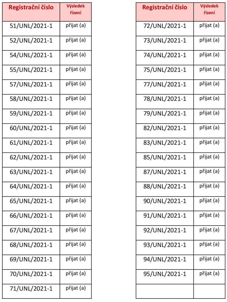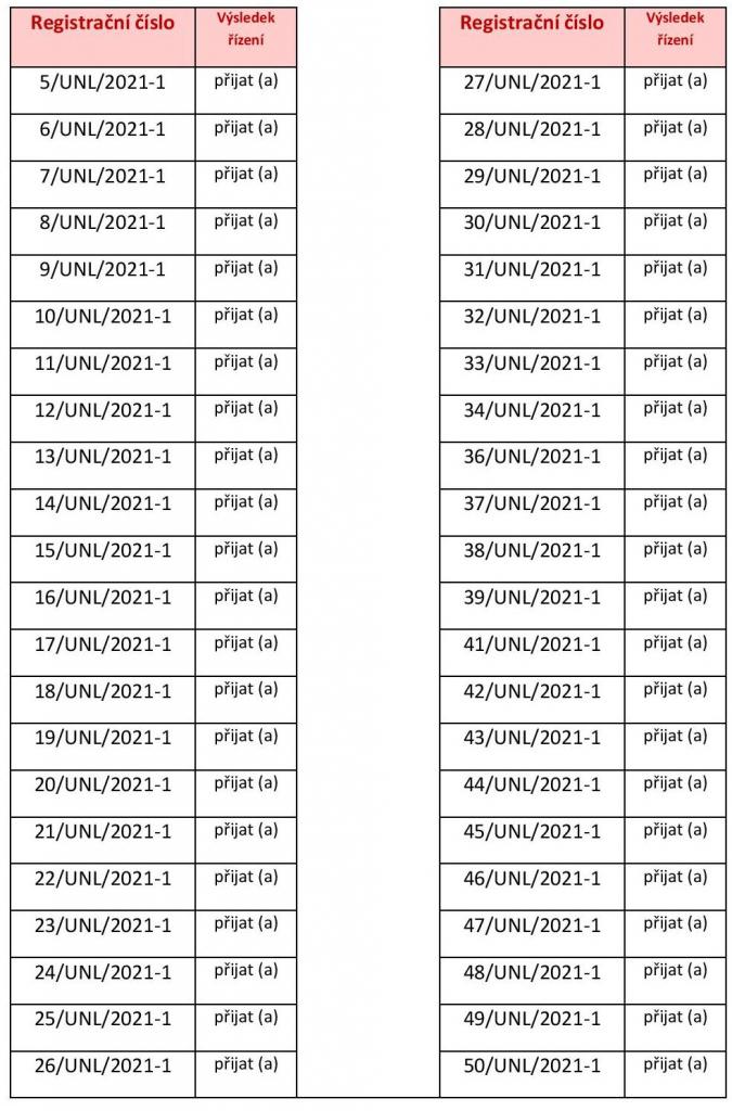 Seznam registračních čísel žáků přijatých k základnímu vzdělání na školní rok 2021/2022.