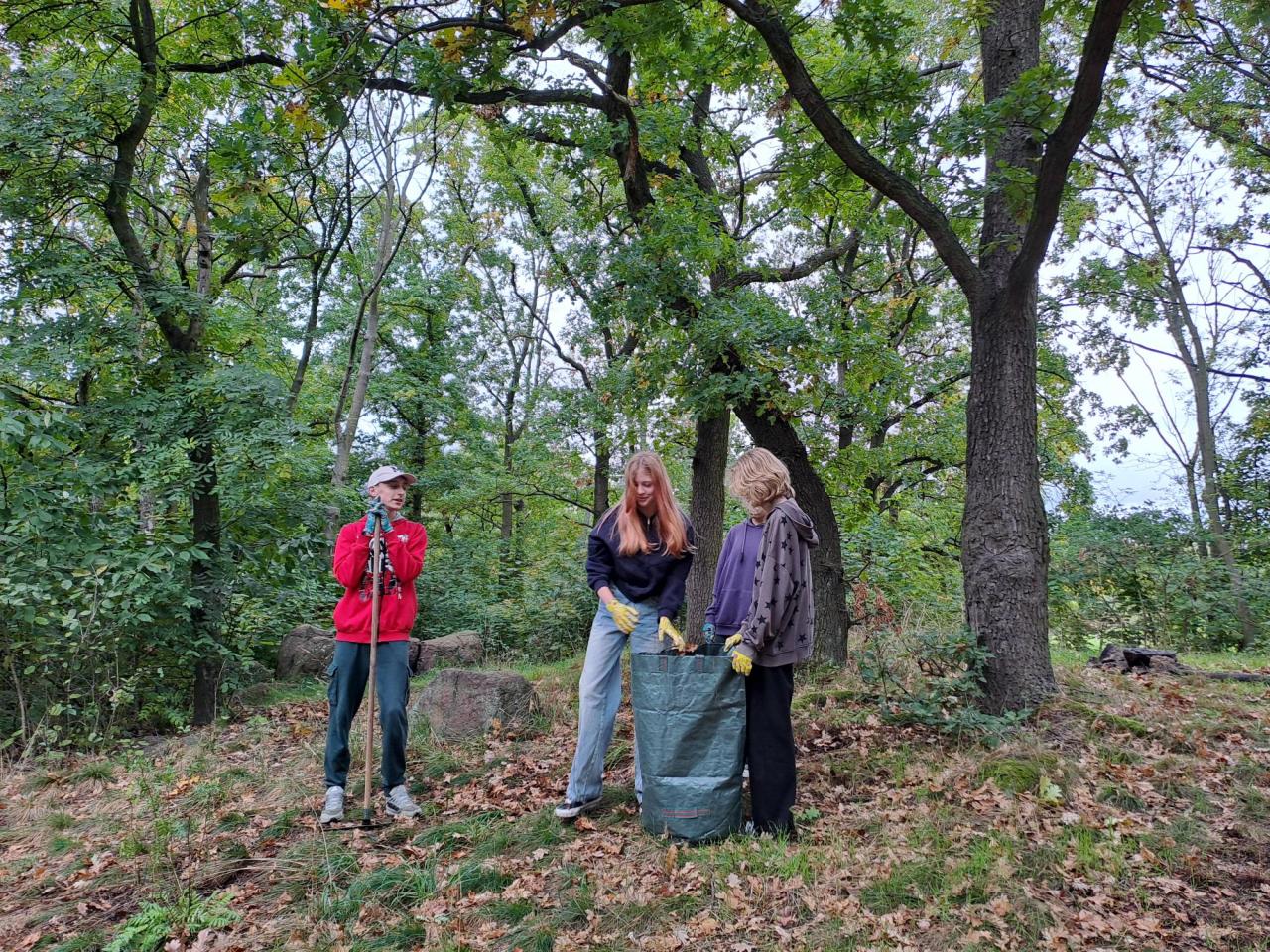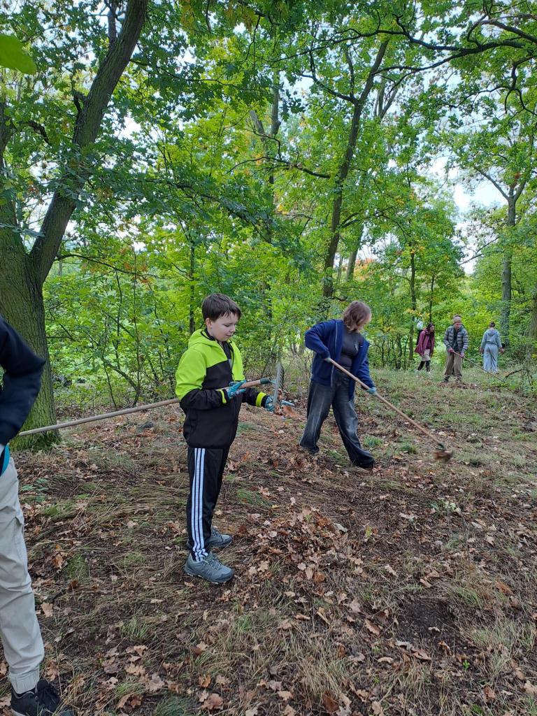 Dětem se pracovní aktivita povedla, během dopoledne zvládly vyčistit území od náletových dřevin a odstranit suchou trávu a listí.