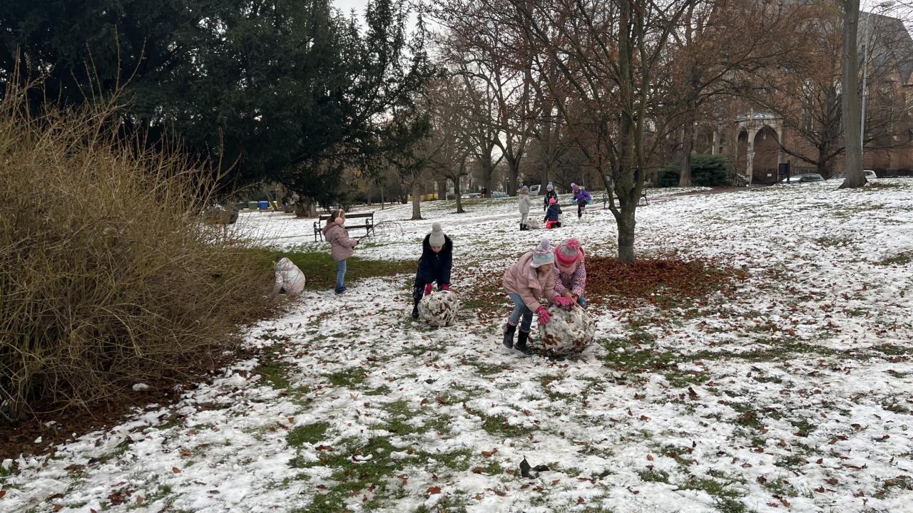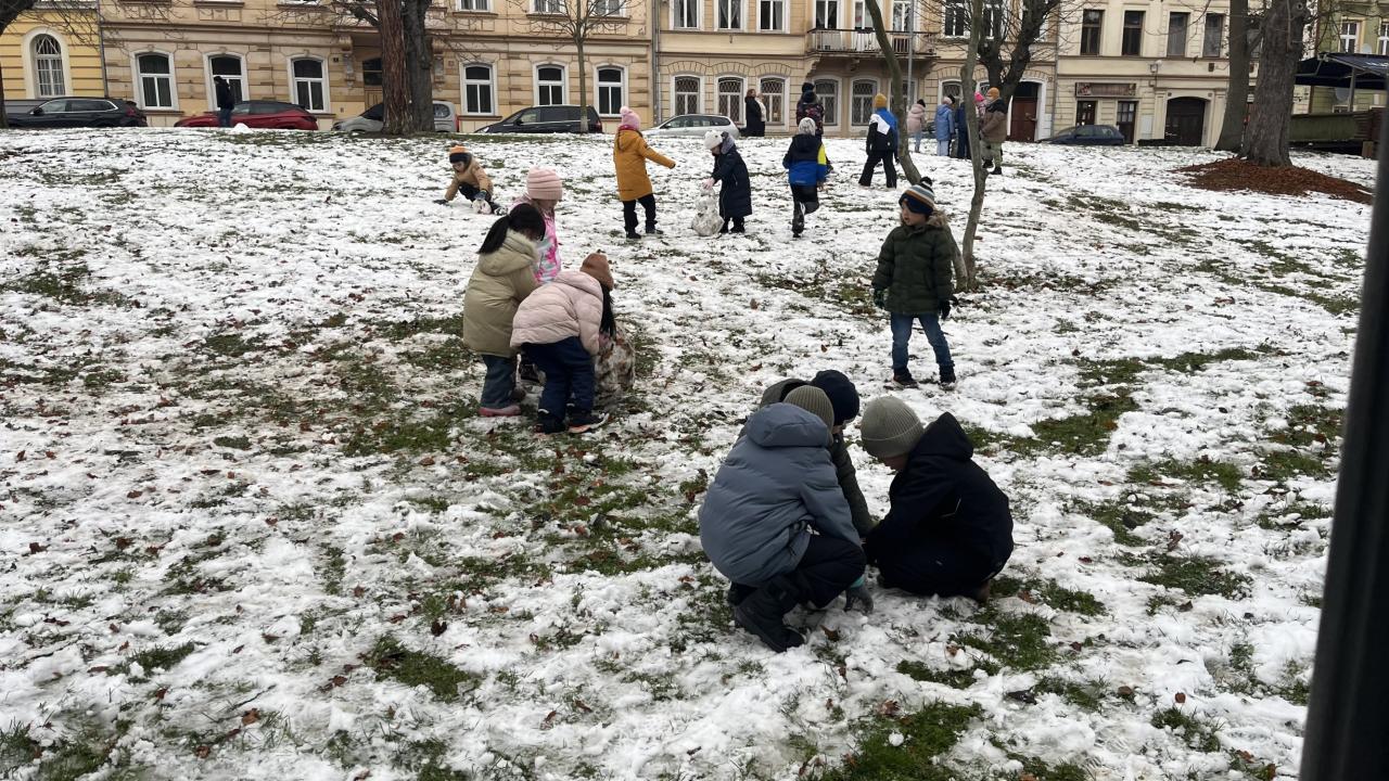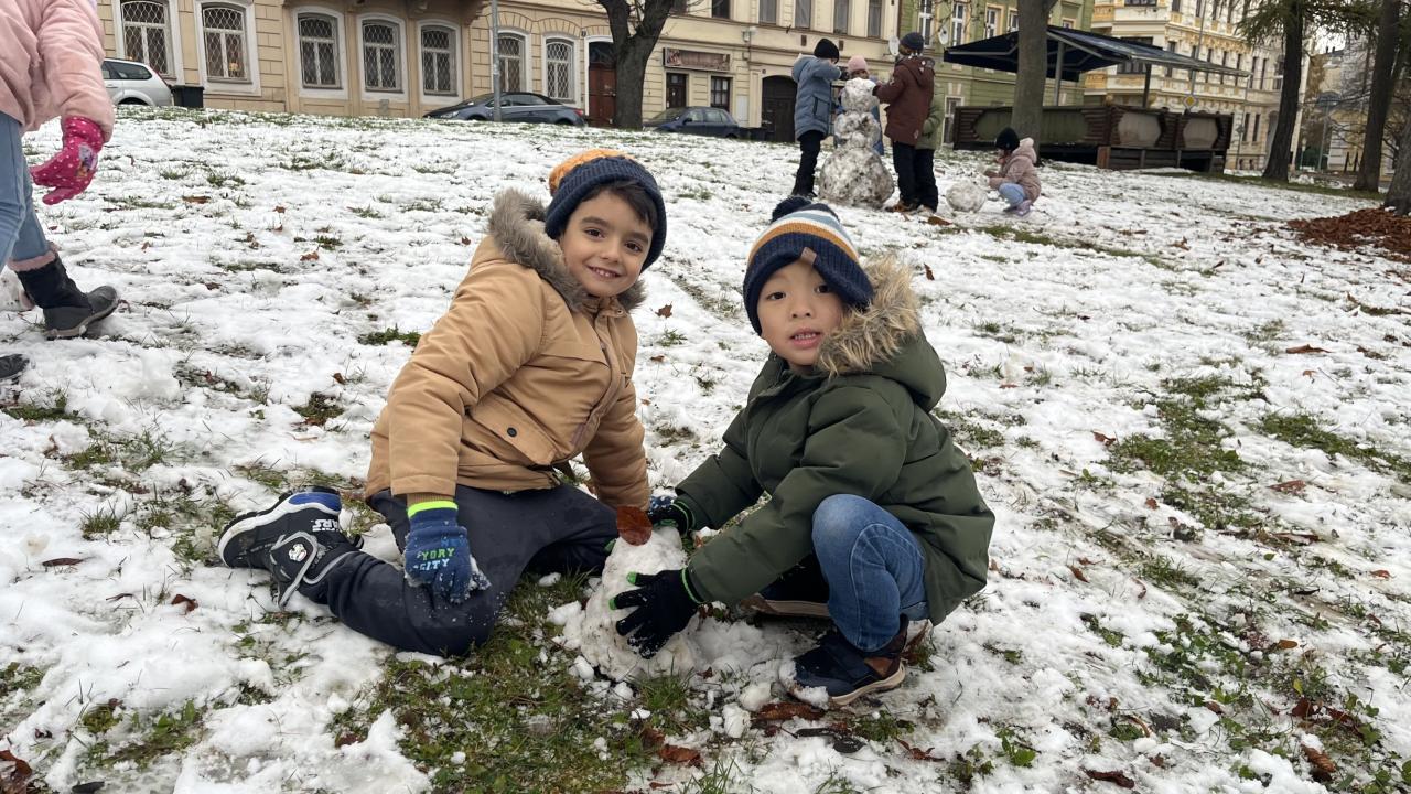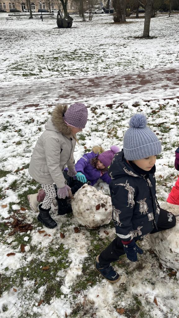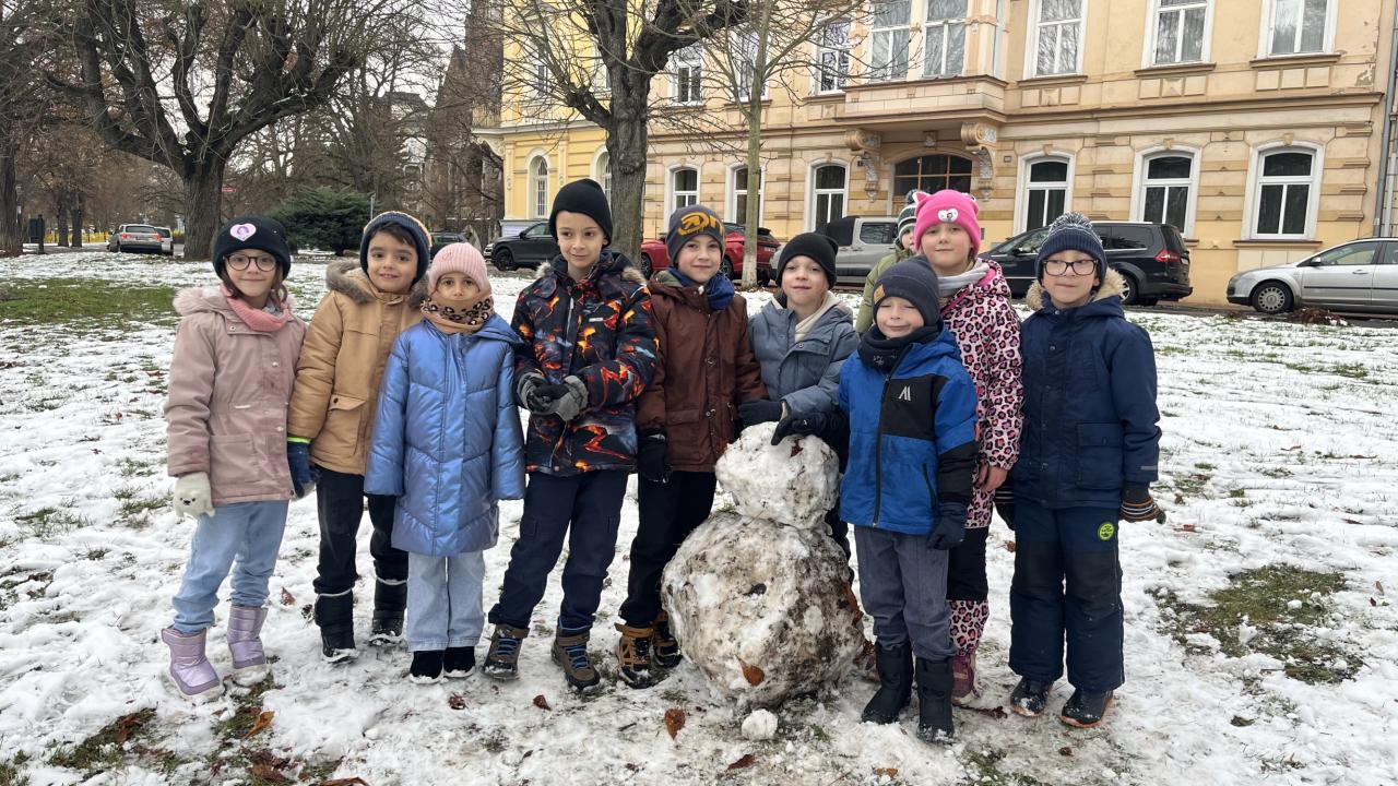 Využily jsme zbytky sněhu k radovánkám a stavění sněhuláků.